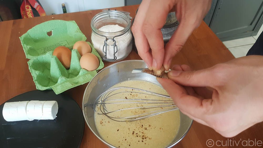 Ajouter 1 petite cuillère de levure chimique pour faire lever la préparation à la cuisson et la rendre plus aérienne.